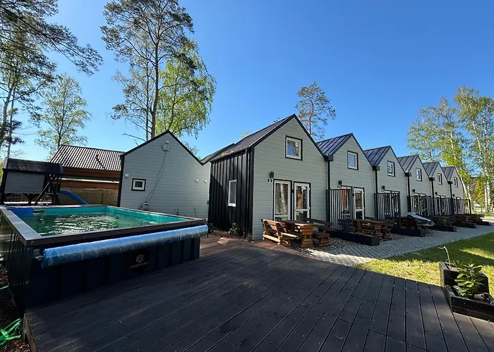 A Domy Nad Morzem- Family Resort - Chata Pirata 2 oferece um acesso a kitchenette, equipada com chaleira elétrica, refrigerador e utensílios de cozinha. Oferecendo aos hóspedes pratos da cozinha Poolse, Smazalnia Rybacka está localizado a caminhada de 19 minutos desta propriedade de Dziwnów. Área para piquenique e instalações para desportos aquáticos estão disponíveis nesta casa de férias familiar, enquanto os amantes do esporte podem experimentar caminhada.